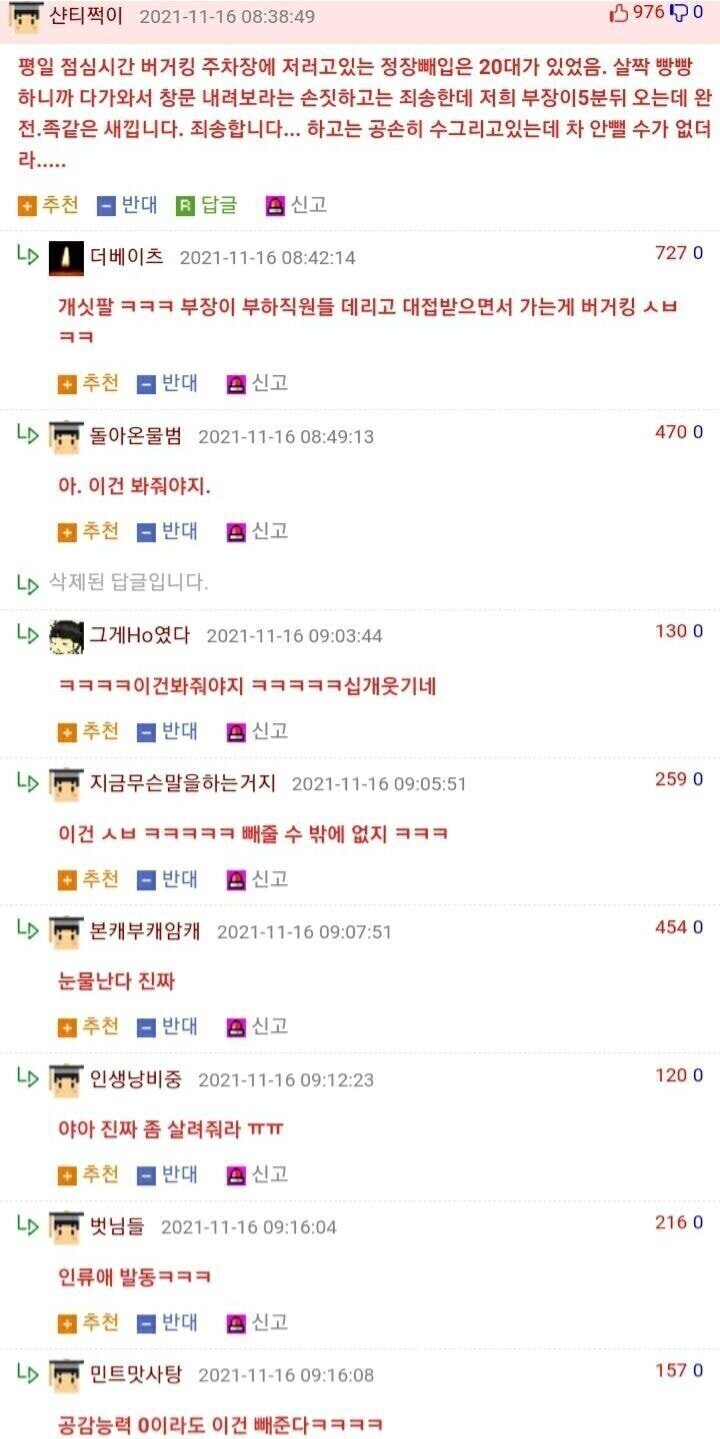 버거킹 주차하려는데 어떤 사람이 자리 맡아놨다고 함