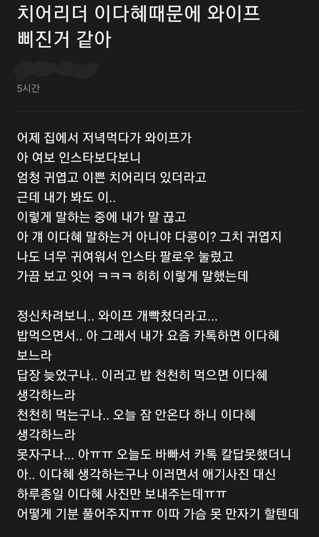 치어리더 이다혜 때문에 와이프가 삐진것 같아
