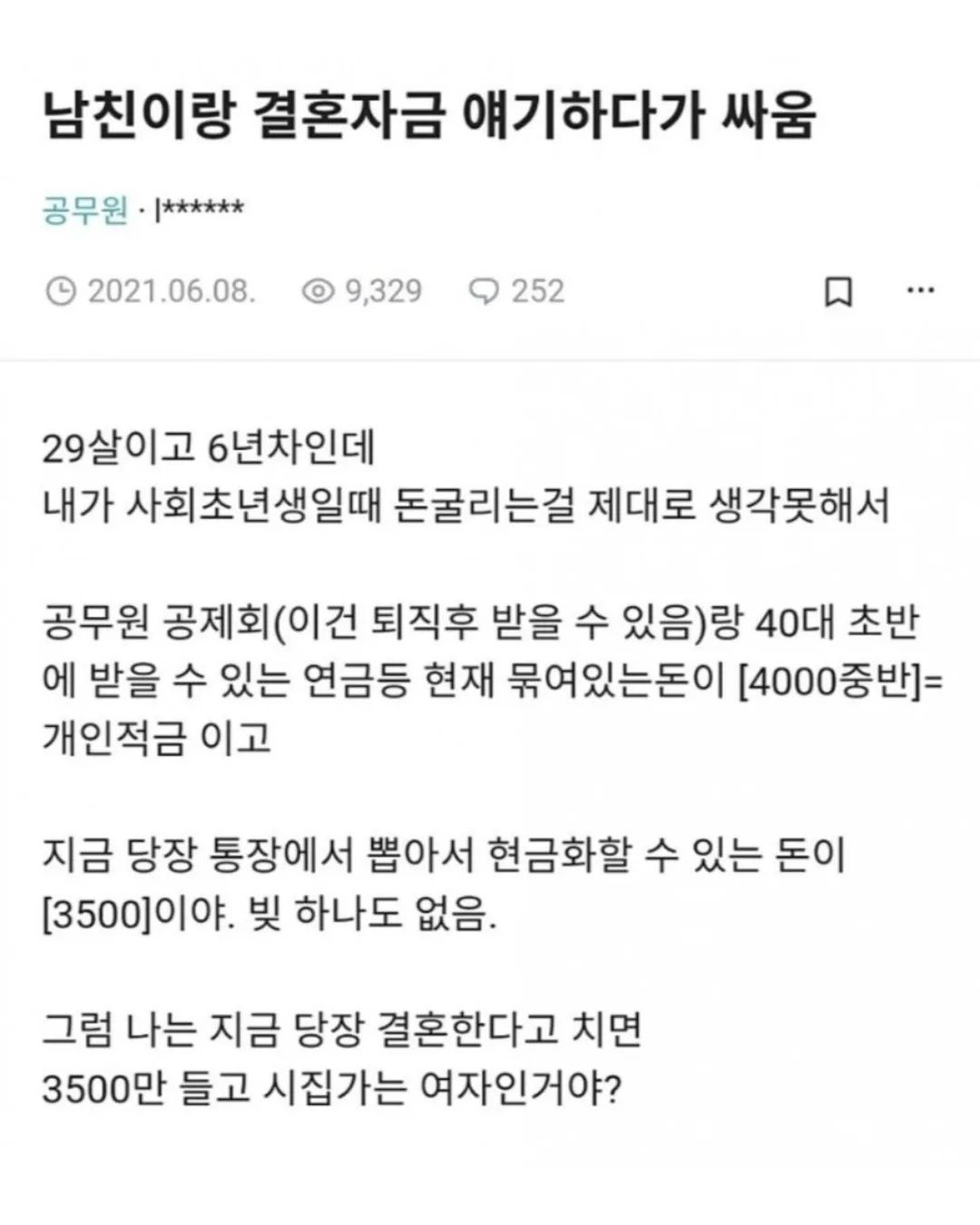 남친이랑 결혼 자금 문제로 싸운 여공무원