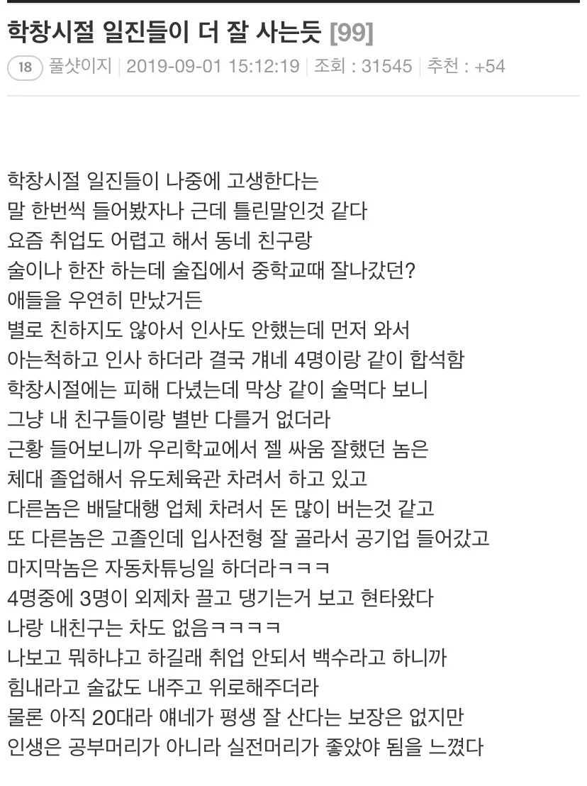 학창시절 일진들이 더 잘 사는 듯 하다는 디씨인.jpg